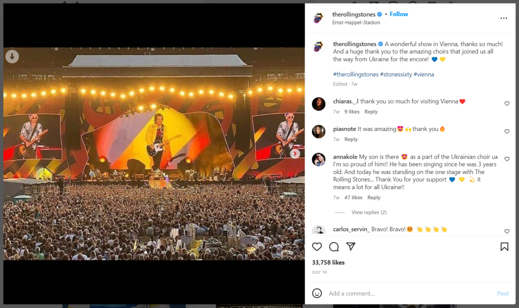 У нас був чудовий вечір! Дякую Відню та особлива подяка українським хорам – ВОГНИК та ДЗВІНОЧОК, які приєдналися до нас на You Can’t Always Get What You Want цього вечора!